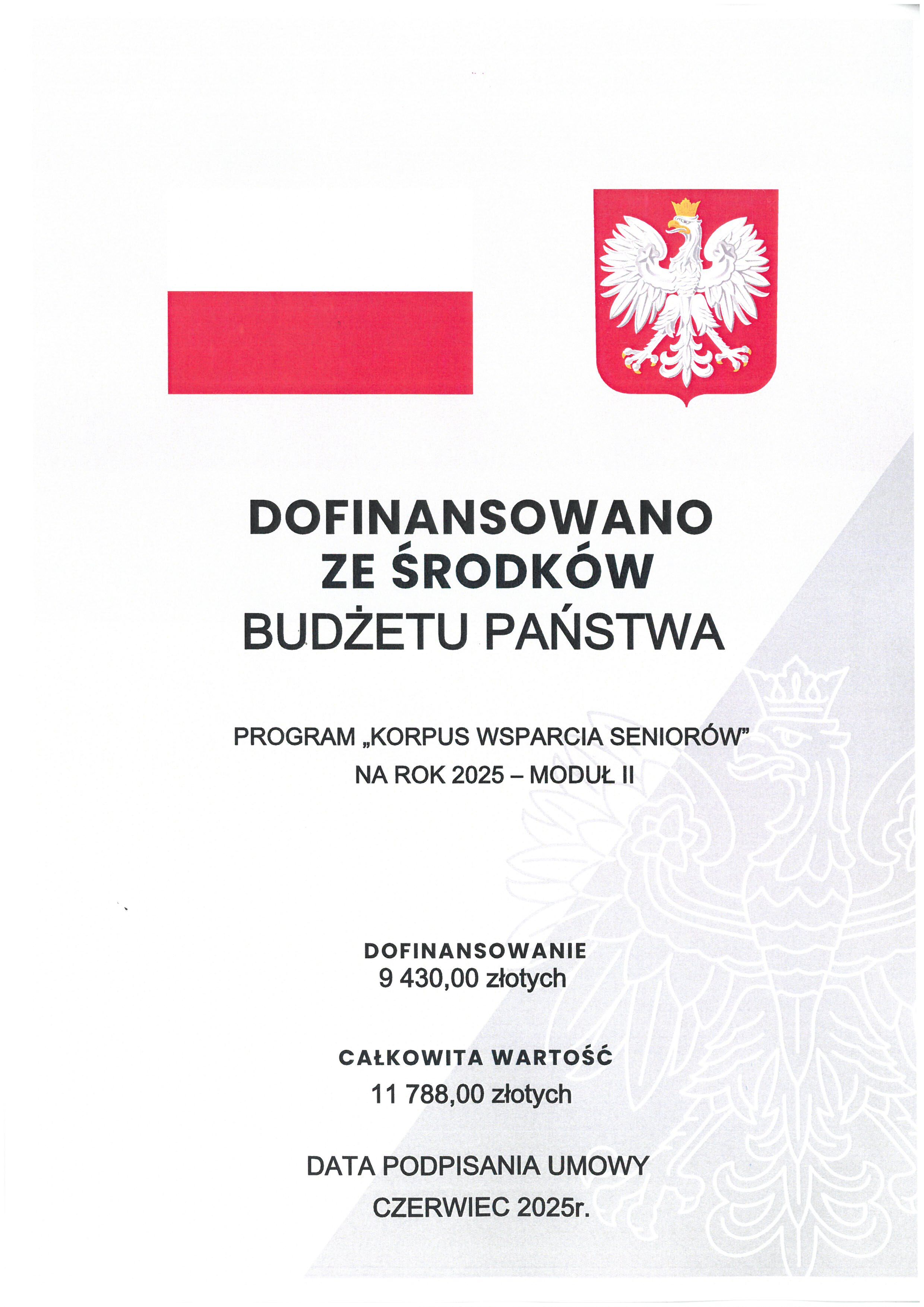 Szczegółowe informacje o Programie można również uzyskać na stronie internetowej Ministerstwa Rodziny, Pracy i Polityki Społecznej: https://www.gov.pl/web/rodzina/program-korpus-wsparcia-seniorow-na-2025-rok.