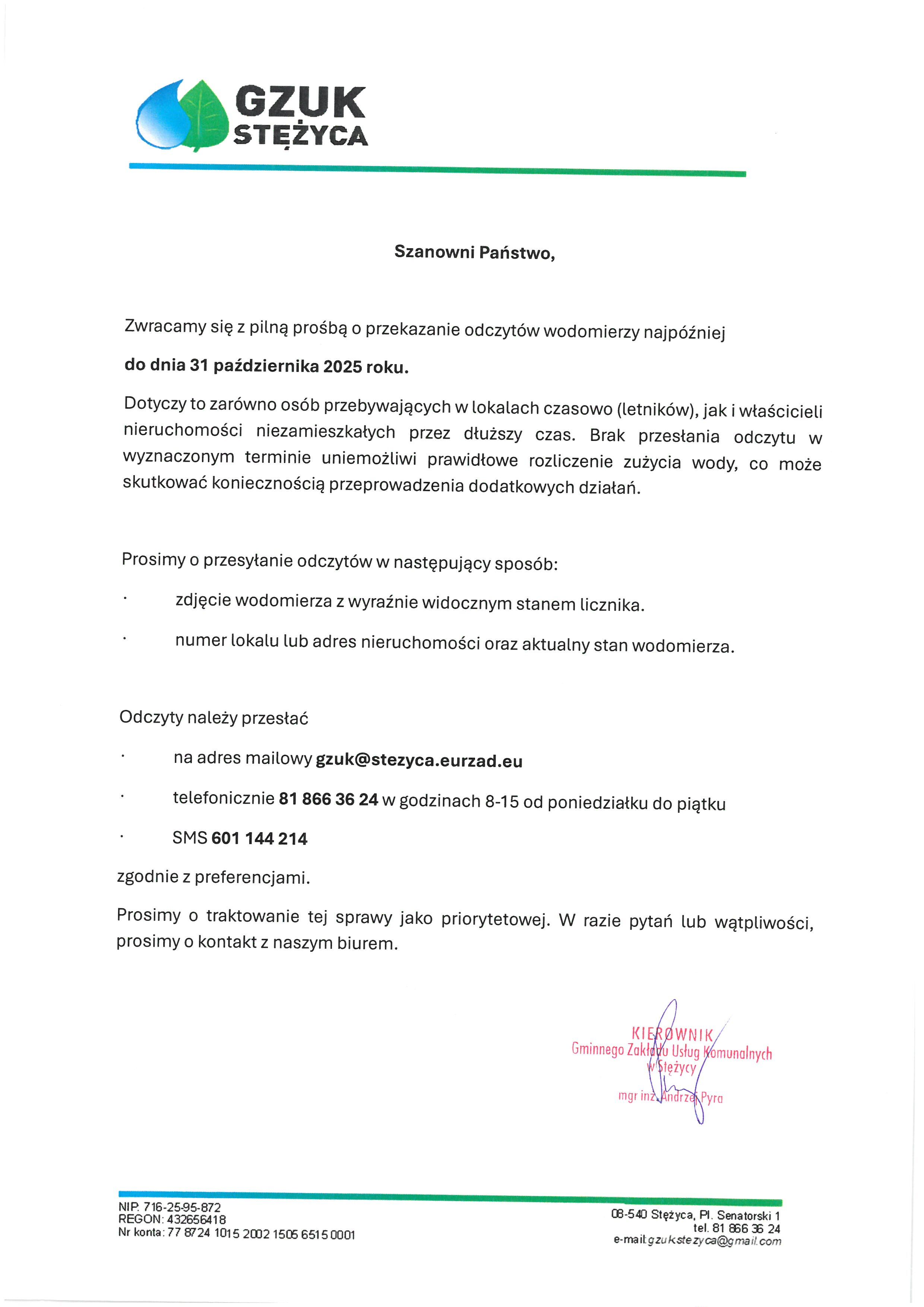 Ogłoszenie GZUK: o przekazywanie odczytów wodomierzy